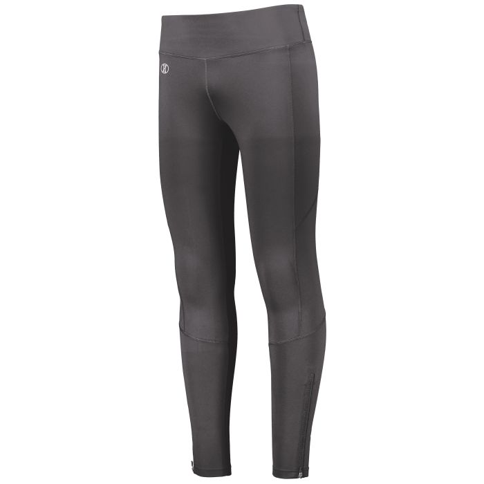 Dry-Excel™ 82% polyester/18% spandex heavyweight knit with high mechanical stretch *4-way stretch for maximum mobility * Ladies' fit * Fits close to body * Tag-free label * High waisted, wide flat waistband for secure fit and comfort * Phone pocket on upper right thigh * Reflective detail on lower back leg * Flatlock stitching provides comfort and helps prevent chafing * Zipper on outside lower leg