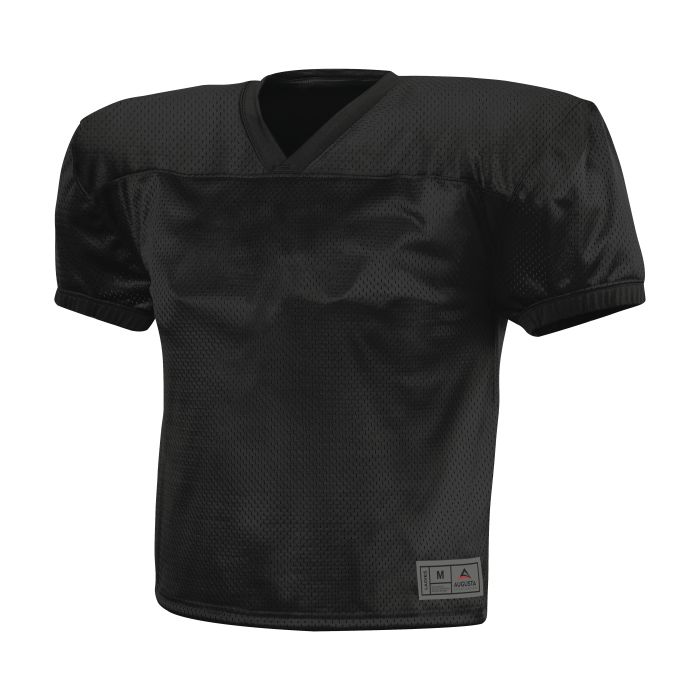 100% polyester heavyweight tricot mesh body * 90% polyester/10% spandex neck, and cuffs for added stretch and better fit over pads * Outside locker label * V-neck collar * Collegiate cut set-in sleeves with elastic cuffs for secure fit over pads