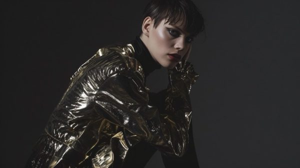 - Mix Textures: Contrast “hard” chrome finishes with “soft” matte fabrics, like a metallic skirt with a chunky wool knit.