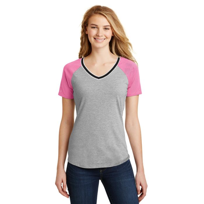 Customize District DT276 CLOSEOUT Juniors Mesh Sleeve V-Neck Tee