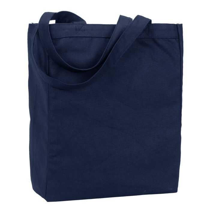 Gusseted tote; Earth Friendly label inside bag; 24" cotton canvas handles; 10.5" x 14" x 5"; Print space: 8"W x 11"H