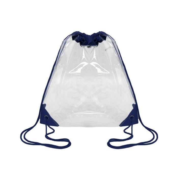Made of clear PVC material; On-woven trim; Color matched drawstrings; Reinforced corner grommets; Stadium compliant; 12" x 12"