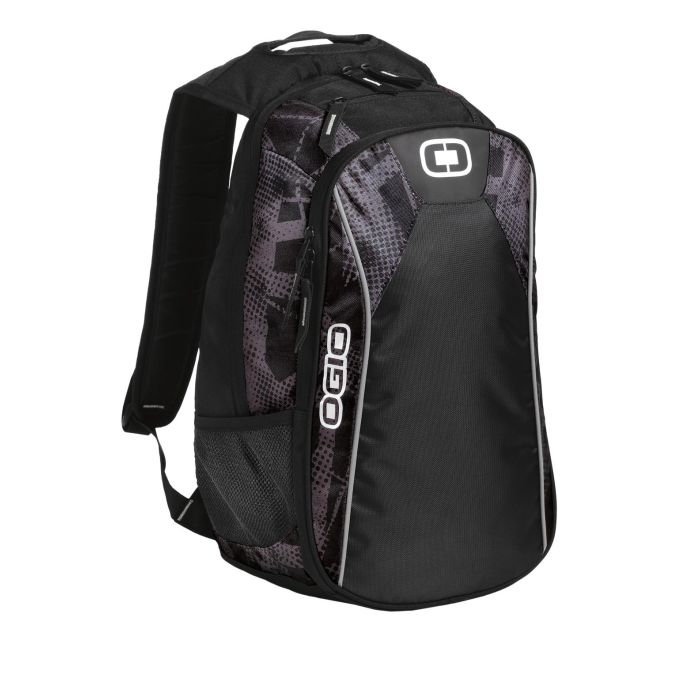 This pack protects your laptop, caters to your professional needs and delivers bold OGIO style.| 600D poly/420D dobby poly Top-entry padded laptop compartment Fleece-lined valuables and digital media pocket Deluxe organization panel Dual side beverage/accessory holsters Ergonomic adjustable shoulder straps Dimensions: 19.25'h x 13'w x 9.5'd Capacity: 1,700 cu. in./28 L Weight: 1.45 lbs./0.66kg Laptop sleeve: 15.5'h x 10.5'w x 1.5'd; fits most 15' laptops Note: Bags not intended for use by children 12 and under. Includes a California Prop 65 and social responsibility hangtag.