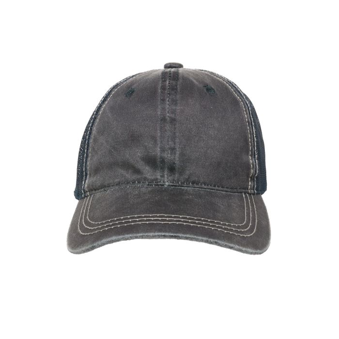 It's crafted with weathered, washed cotton front panels for a vintage look and breathable mesh back panels for comfort and ventilation.