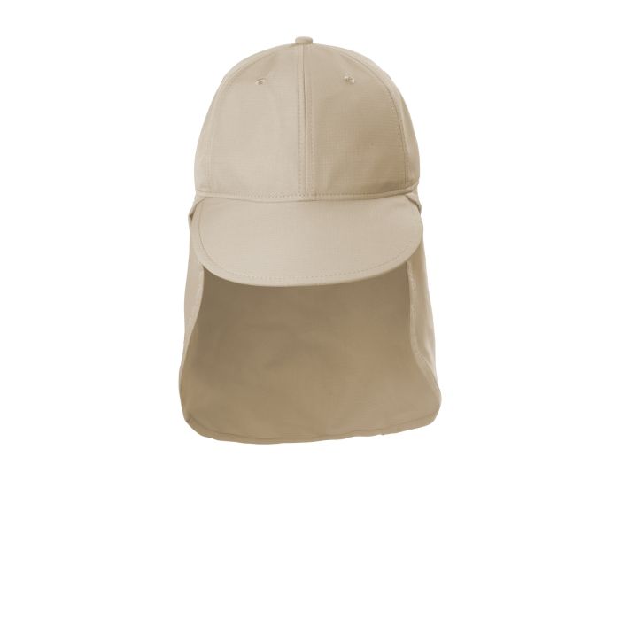 75/25 poly/nylon ripstop No Fly Zone ® insect repellent technology UPF 30+ sun protection Moisture-wicking sweatband Unstructured Low-profile Adjustable cord and toggle at crown Elongated bill for additional sun protection 9.875'h x 19.125'w back neck sun cape Specially treated products may be subject to additional requirements. Please check with your local authorities for any additional requirements that may apply.