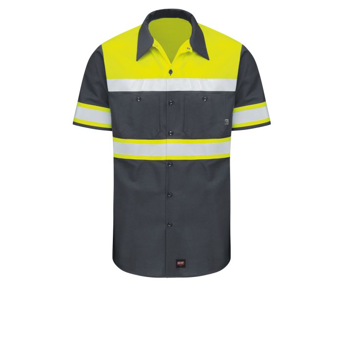 Red Kap SY80YC Men's Hi-Visibility Short Sleeve Color Block Ripstop Work Shirt